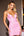 Różowa sukienka imprezowa z dekoltem w szpic z dekoltem w szpic