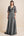 Stalowo-szara satynowa sukienka z dekoltem w serek asymetryczna długa sukienka z wiązaniem