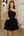 Stylowa czarna krótka sukienka bez ramiączek z frędzlami