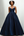 Sweetheart granatowe ramiączka spaghetti długa satynowa suknia balowa z bocznymi niewidocznymi kieszeniami