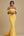 Suknia wieczorowa z odkrytymi ramionami matowa satynowa żółta syrenka