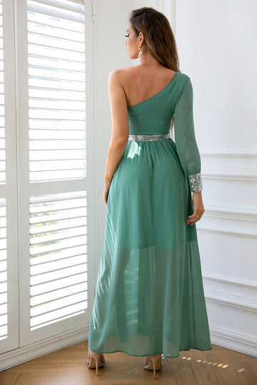 Szyfon Zielona Sukienki Wieczorowe Na Jedno Ramię