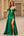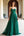 Zimna zielona satynowa sukienka w kształcie litery A z rozcięciem
