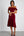 Bordowa sukienka dla gości weselnych z dekoltem w stylu bateau z wysokim tonem