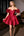 Bordowa satynowa krótka sukienka na powrót do domu z aplikacjami