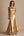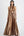 Złota osłona z dekoltem satynowa sukienka dla druhen z rozcięciem
