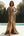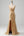 Złota sukienka galowa z głębokim dekoltem w serek z marszczeniami i rękawami z kapturkiem