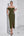 Zielona satynowa sukienka robocza midi z dekoltem w serek z marszczeniami i drapowaniem