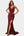 Burgundia Błyszcząca Sukienka Wieczorowa Z Rozcięciem