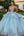 Błękitna księżniczka z odkrycia ramion tiulowa sukienka quinceanera z aplikacjami