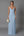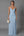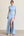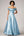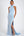 Błękitna formalna sukienka z marszczeniami i rozcięciem