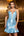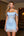 Błękitna krótka gorsetowa sukienka z gorsetem z frędzlami