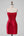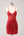 Błyszcząca czerwona sukienka z cekinami bez ramiączek i kokardą