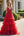Błyszcząca czerwona suknia balowa głębokie falbany w kształcie litery V Tiulowa długa sukienka na studniówkę z koralikami