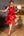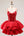 Błyszcząca czerwona warstwowa sukienka z falbankami w kształcie litery A
