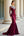 Błyszcząca okrągła szyja syrenka bordowa sukienka wizytowa z długimi rękawami