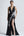 Błyszcząca sukienka wizytowa z dekoltem w szpic i rozcięciem