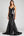 Błyszcząca syrenka z dekoltem w szpic i czarnym wiązaniem z koronkowym tyłem na plecach