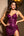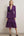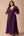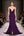 Ciemnofioletowa głęboka sukienka galowa z dekoltem w serek i krótkimi rękawami