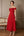 Ciemnoczerwona sukienka do herbaty z odkrytymi ramionami dla matki panny młodej