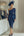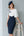 Biała granatowa sukienka matki panny młodej z krótkim dekoltem i pochwą z peleryną