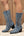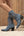 Ciemnoniebieskie szpiczaste noski na środku łydki na grubym obcasie haftowane kowbojki