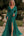 Ciemnozielona aksamitna długa sukienka wizytowa z trzepoczącymi rękawami