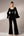 cekinowy długi kombinezon z dekoltem w szpic i długimi rękawami