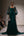 Ciemnozielona długa sukienka syrena z kwadratowym dekoltem i rękawami