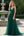 Ciemnozielona Osłona Dekolt W Szpic Długa Formalna Sukienka Z Rozcięciem