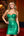 Ciemnozielona satynowa długa sukienka na studniówkę z aplikacją