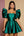 Ciemnozielona satyna linia marszczona na ramionach krótka sukienka na powrót do domu