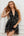 Czarna Błyszcząca Cekinowa Głęboki Dekolt W Szpic Krótka Sukienka Na Imprezę