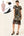 Czarna Krata Na Ramieniu Sukienka Vintage Z Krótkim Rękawem