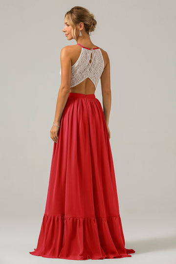 Czerwona Sukienki Na Wesele z Koronki w Kształcie Litery A
