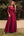 Bordowa długa suknia druhny z koronką