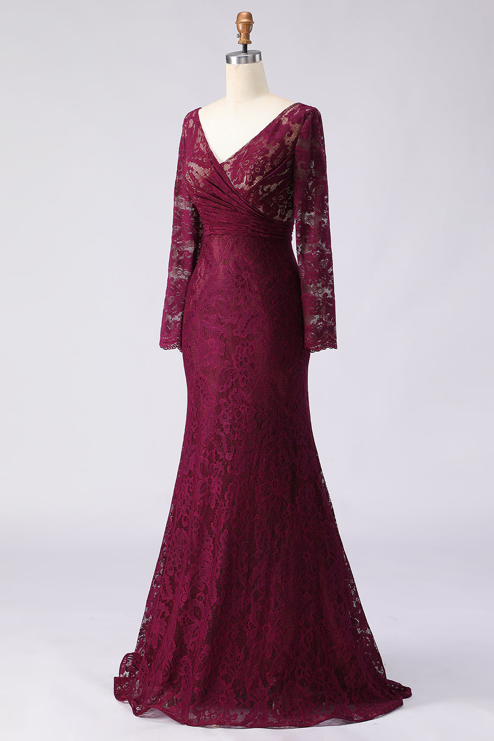 Cabernet Syrenka Koronkowa Dekolt V Długa Sukienki Na Wesele z Rękawy