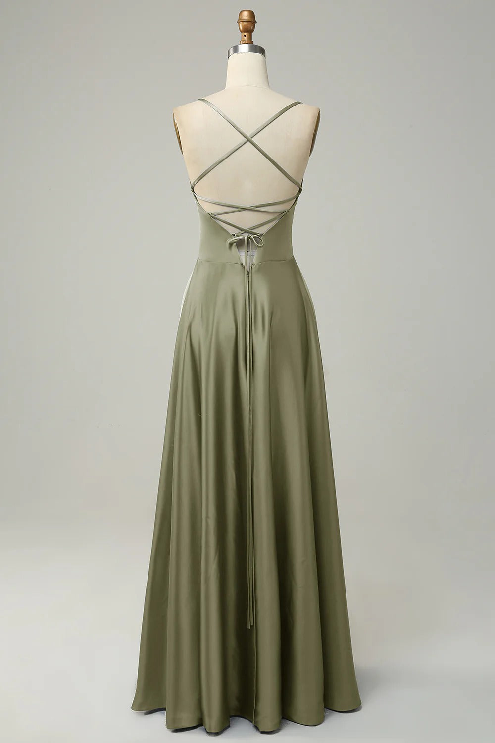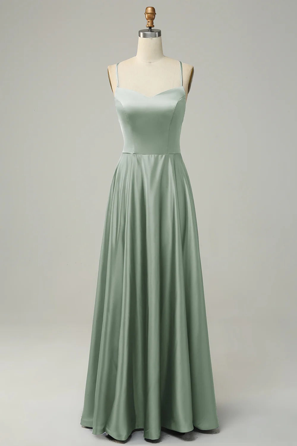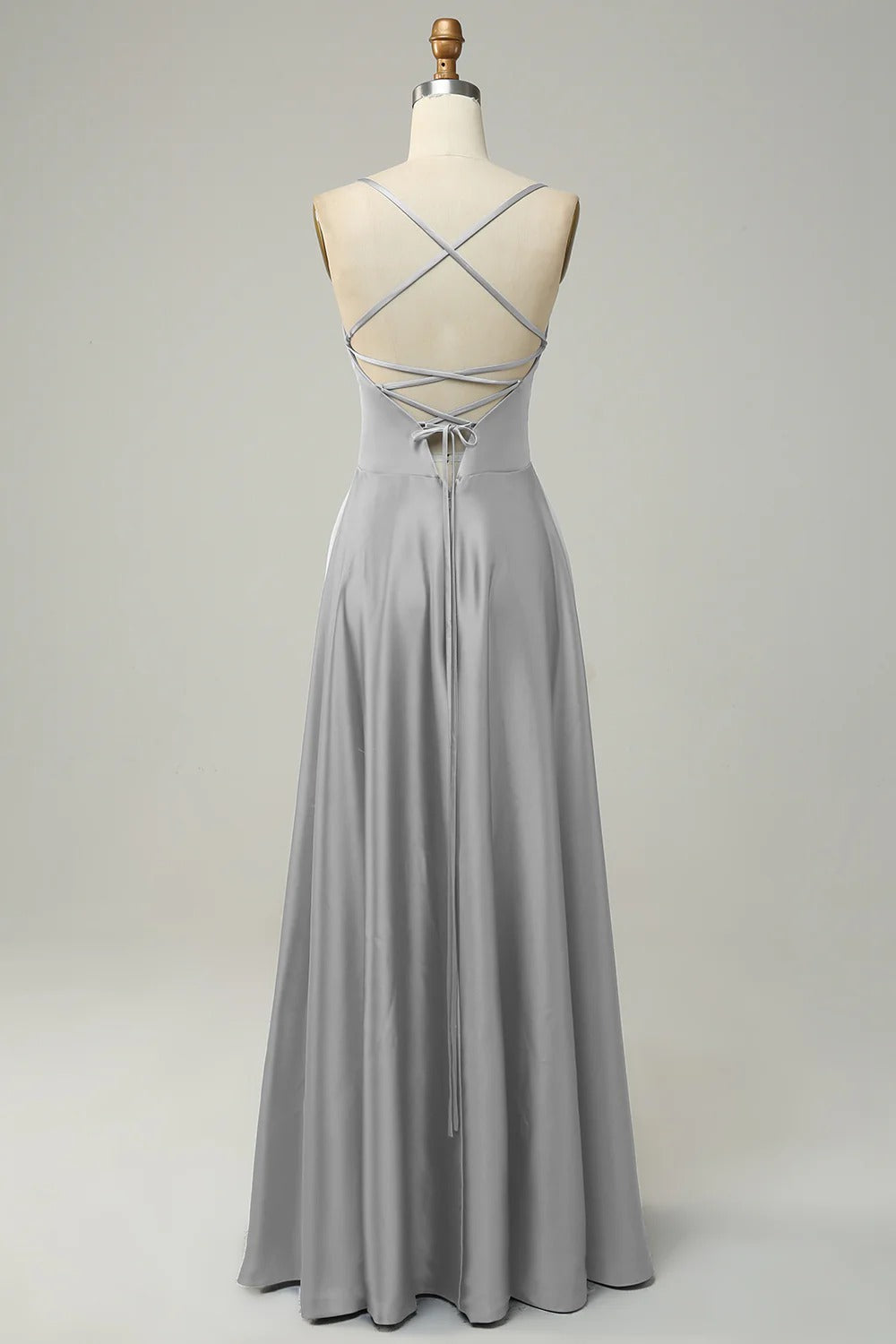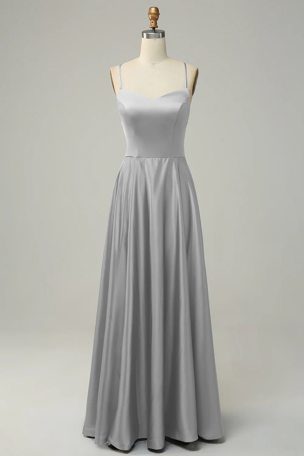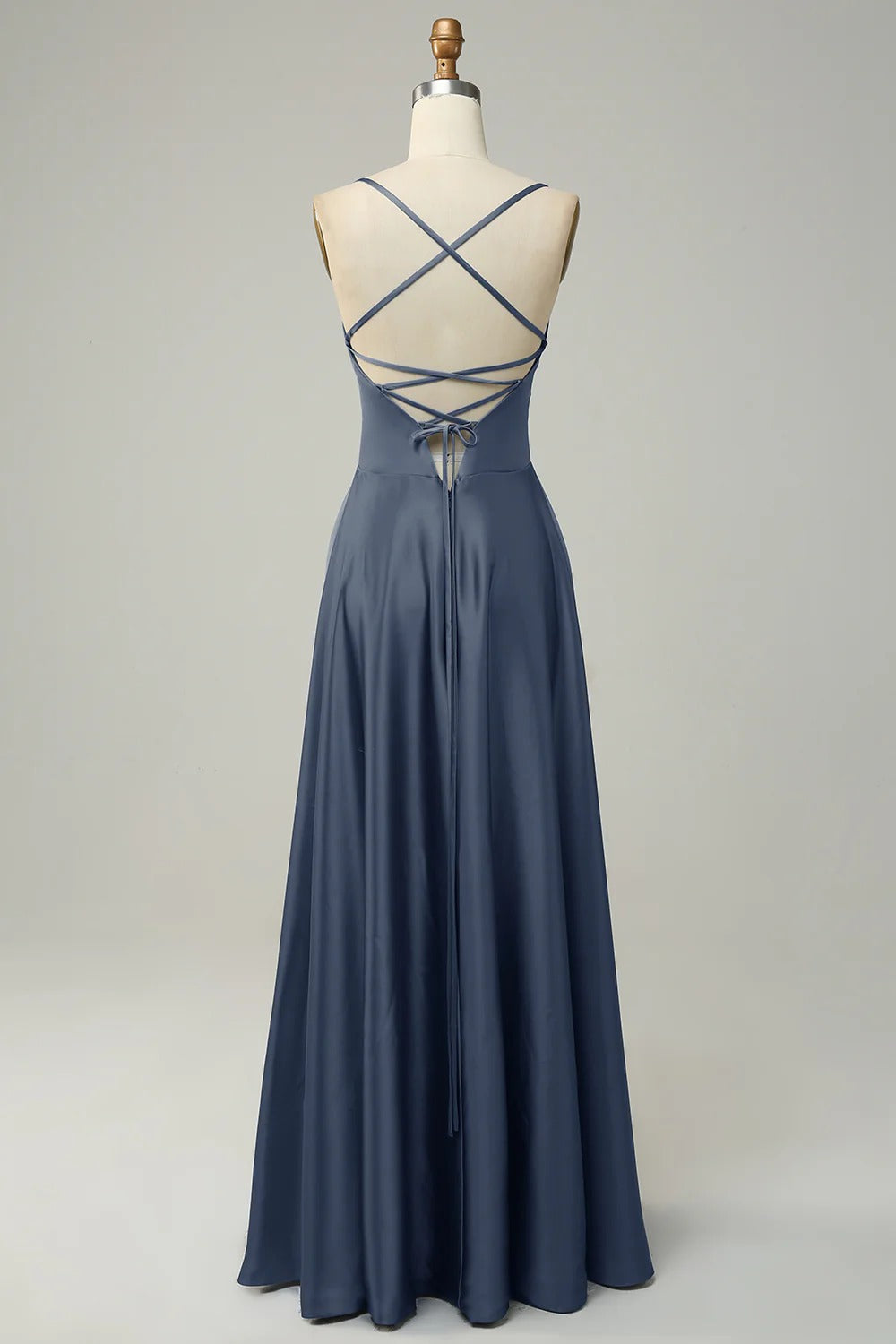 Szary Niebieski Satynowe Kształcie Litery A Długa Sukienka Na Wesele