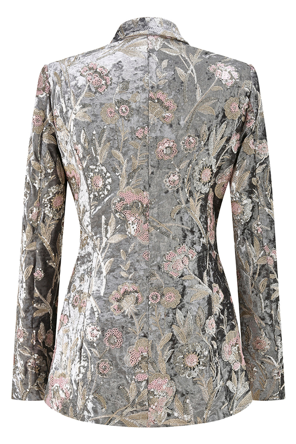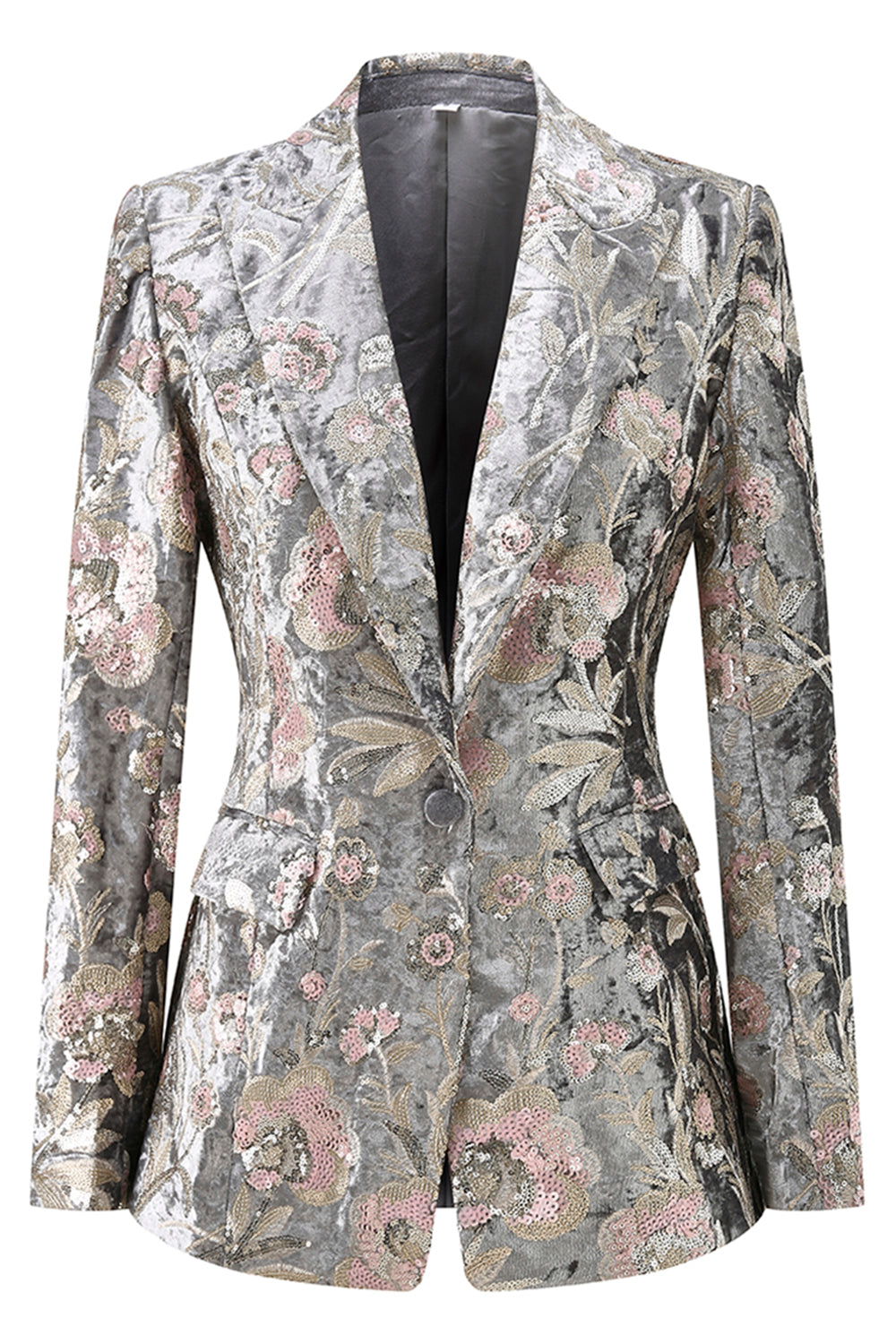 2-częściowe błyszczące szare garnitury damskie z klapami w szpic