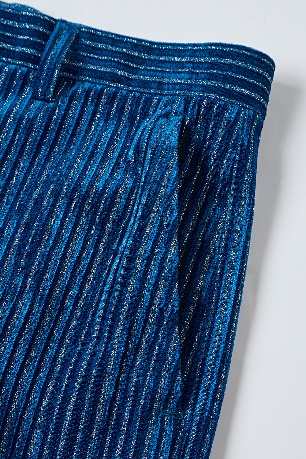 2-częściowe atramentowe niebieskie aksamitne damskie garnitury w paski na studniówkę