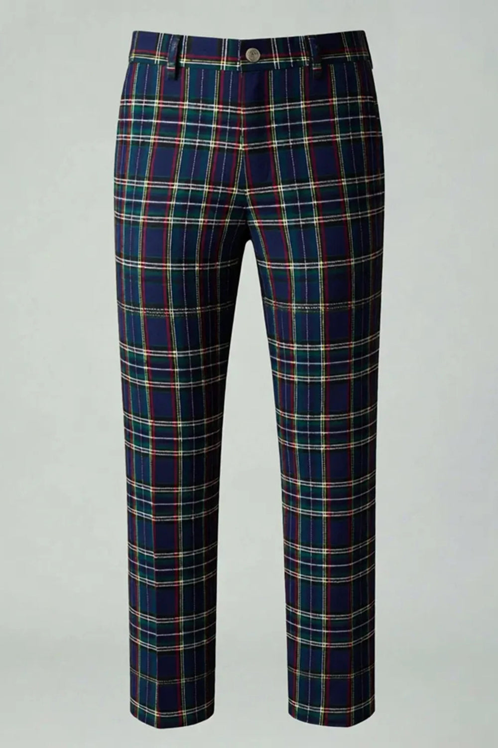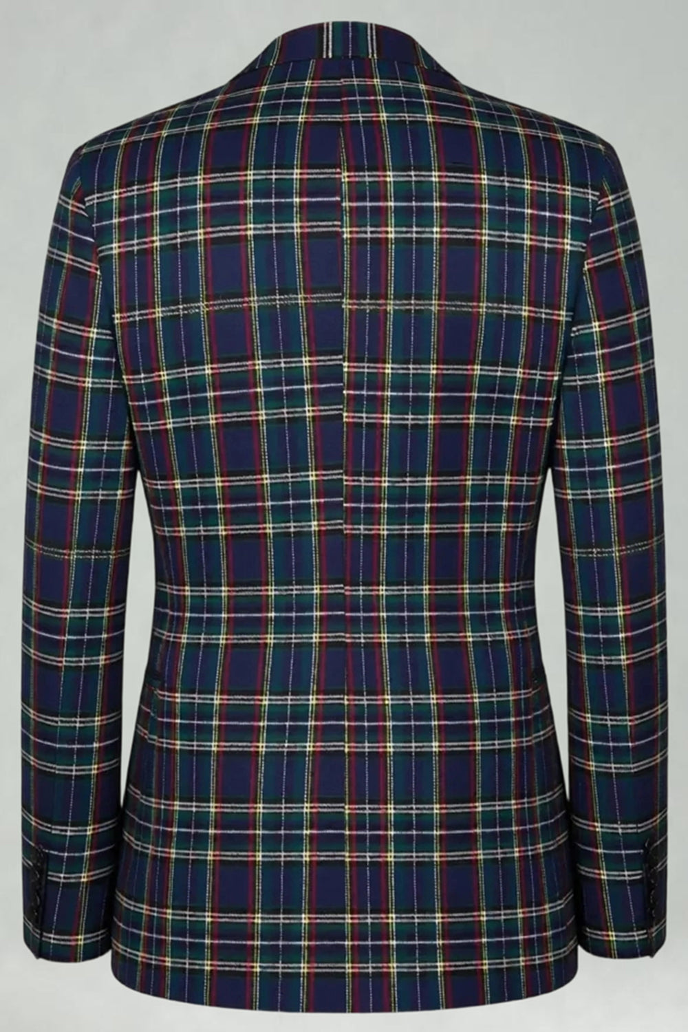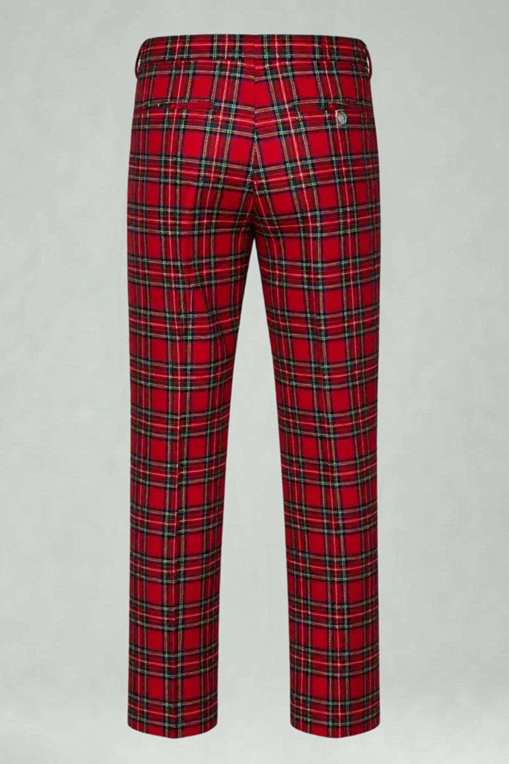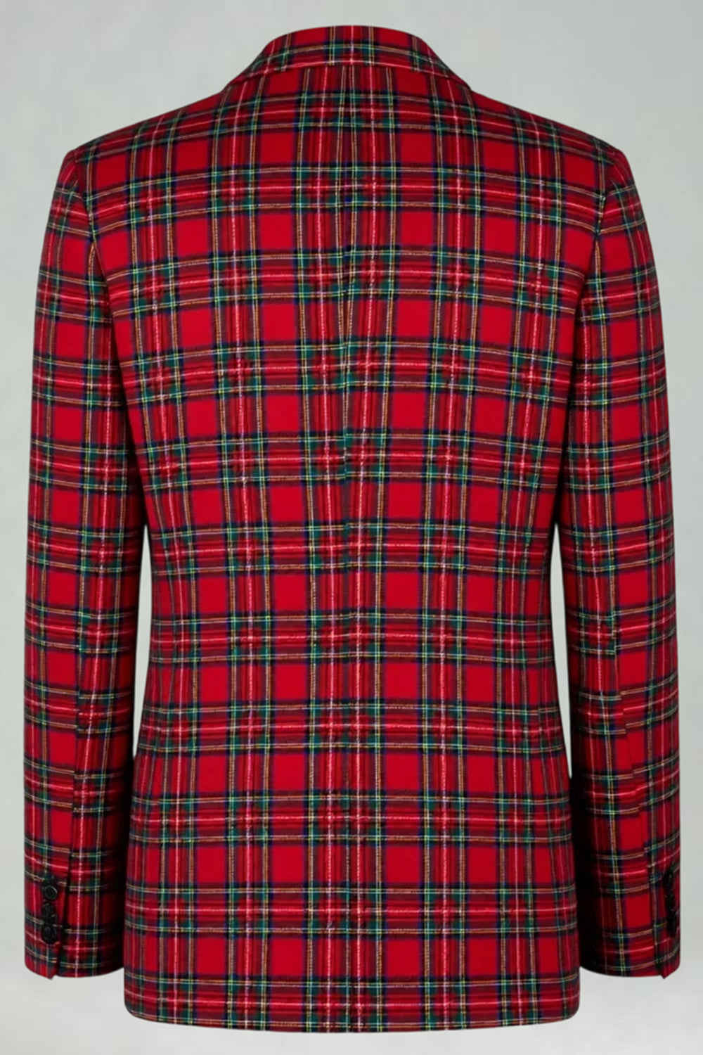 Czerwono-klapa w kratę z karbem 2-częściowe męskie garnitury na studniówkę