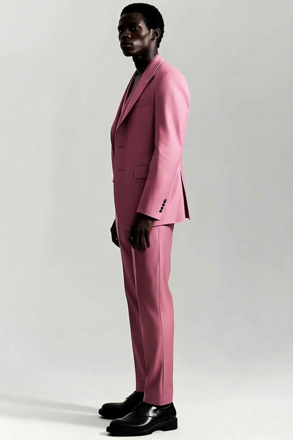 Szary różowy szczyt klapy jednorzędowe 3-częściowe męskie garnitury wizytowe