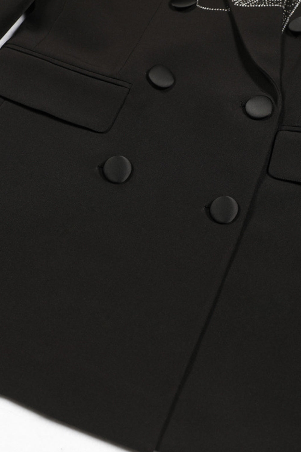 Błyszcząca klapa z klapą na studniówkę dwurzędowa damska marynarka z koralikami