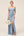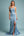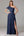 Zakurzona niebieska satynowa osłona z dekoltem w szpic z wycięciem dla druhen z rozcięciem