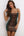Błyszcząca czarna krótka sukienka do domu z frędzlami