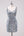 Błyszcząca srebrna krótka sukienka z dekoltem w serek z dekoltem w szpic z cekinami