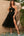 Błyszcząca krótka sukienka o linii A z ciemnozielonymi wiązaniami na szyi z cekinami