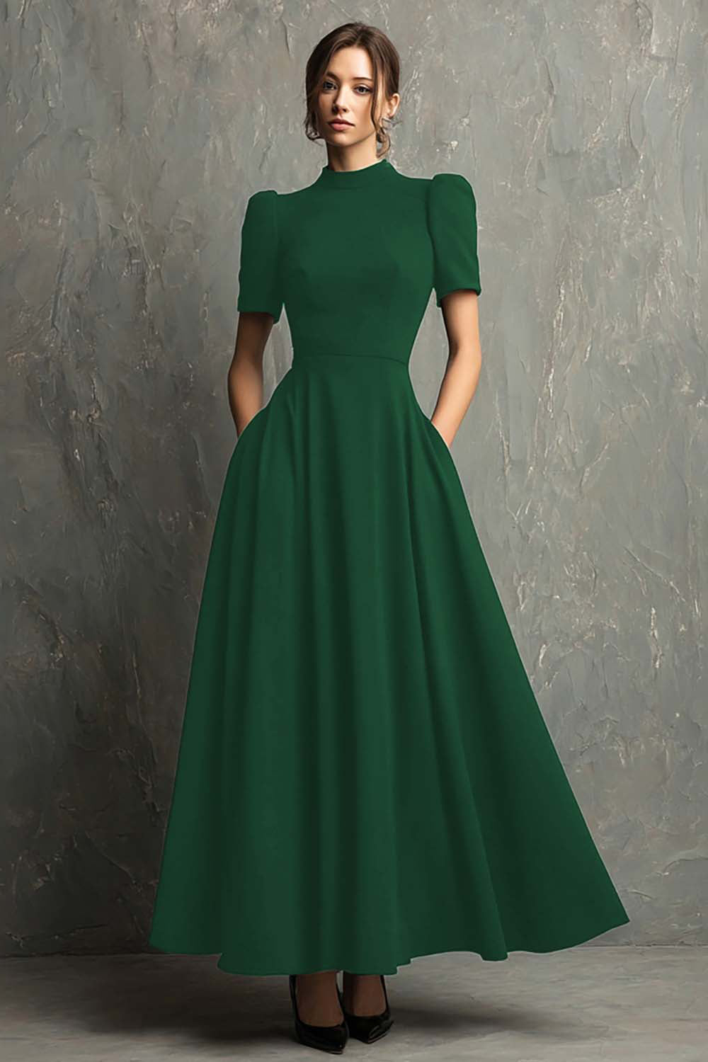 Czarny Kształcie Litery A Wysoka Szyja Długa Sukienki Wieczorowe z Rękawy