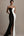 sukienka wieczorowa z odkrytymi ramionami i rozcięciem