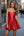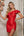 Czerwona satynowa satynowa krótka sukienka na szyi i szyjce na szyję